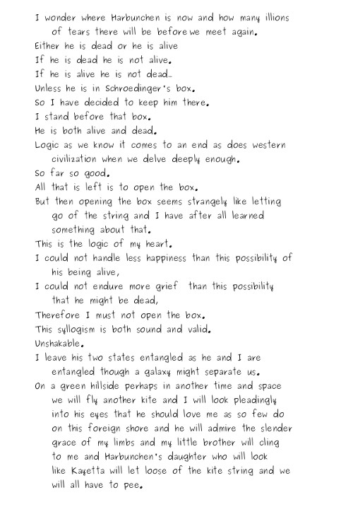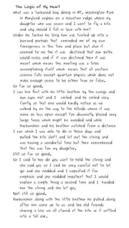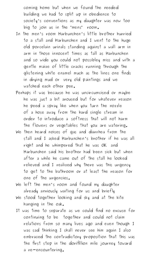 Experiences like this inclined me to believe in reincarnation. I think we may know people with whom we are “entangled” in many different relationships in different lives. I wrote a poem about Harbunchen and his brother and our kite-flying experience.